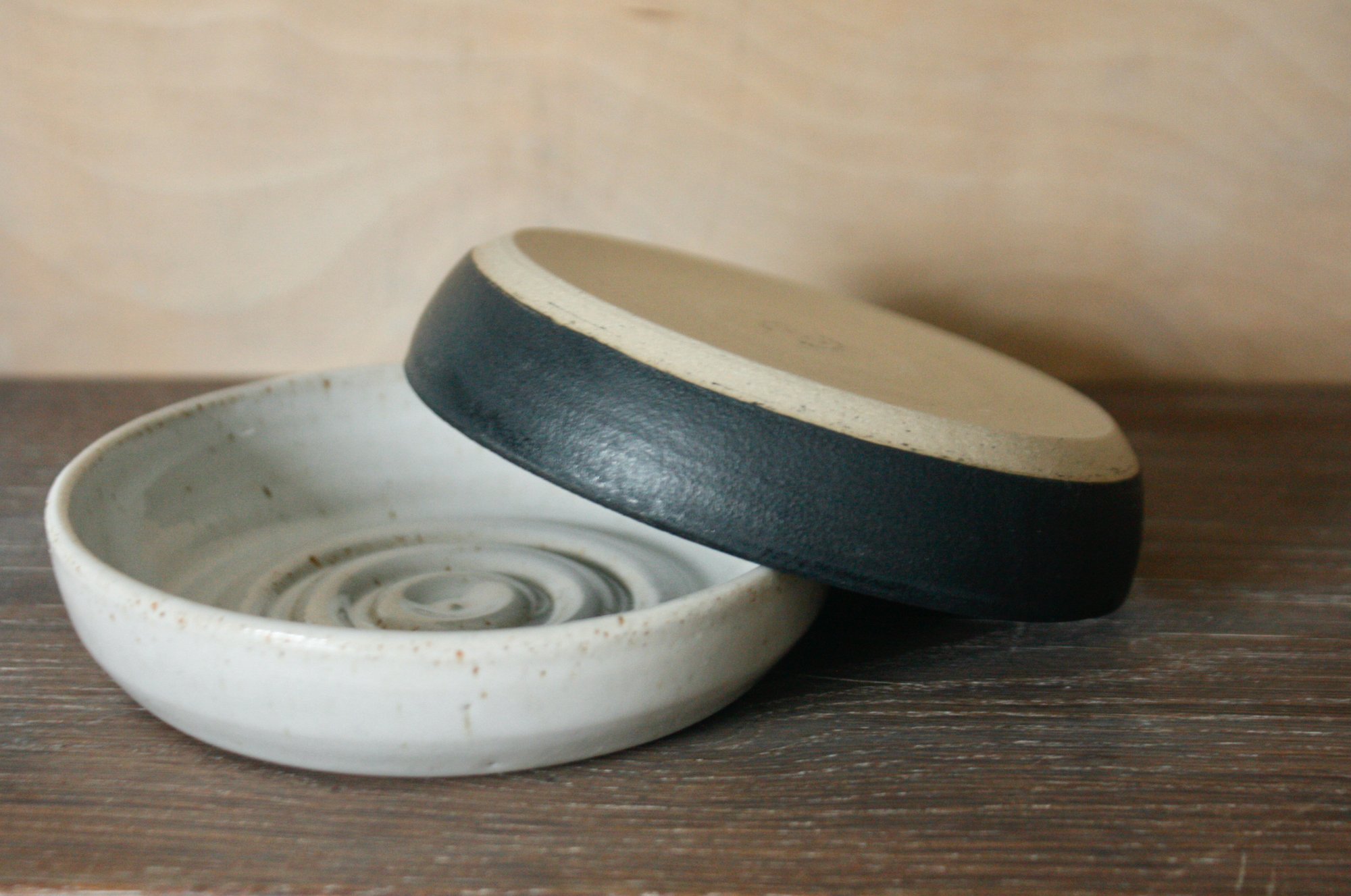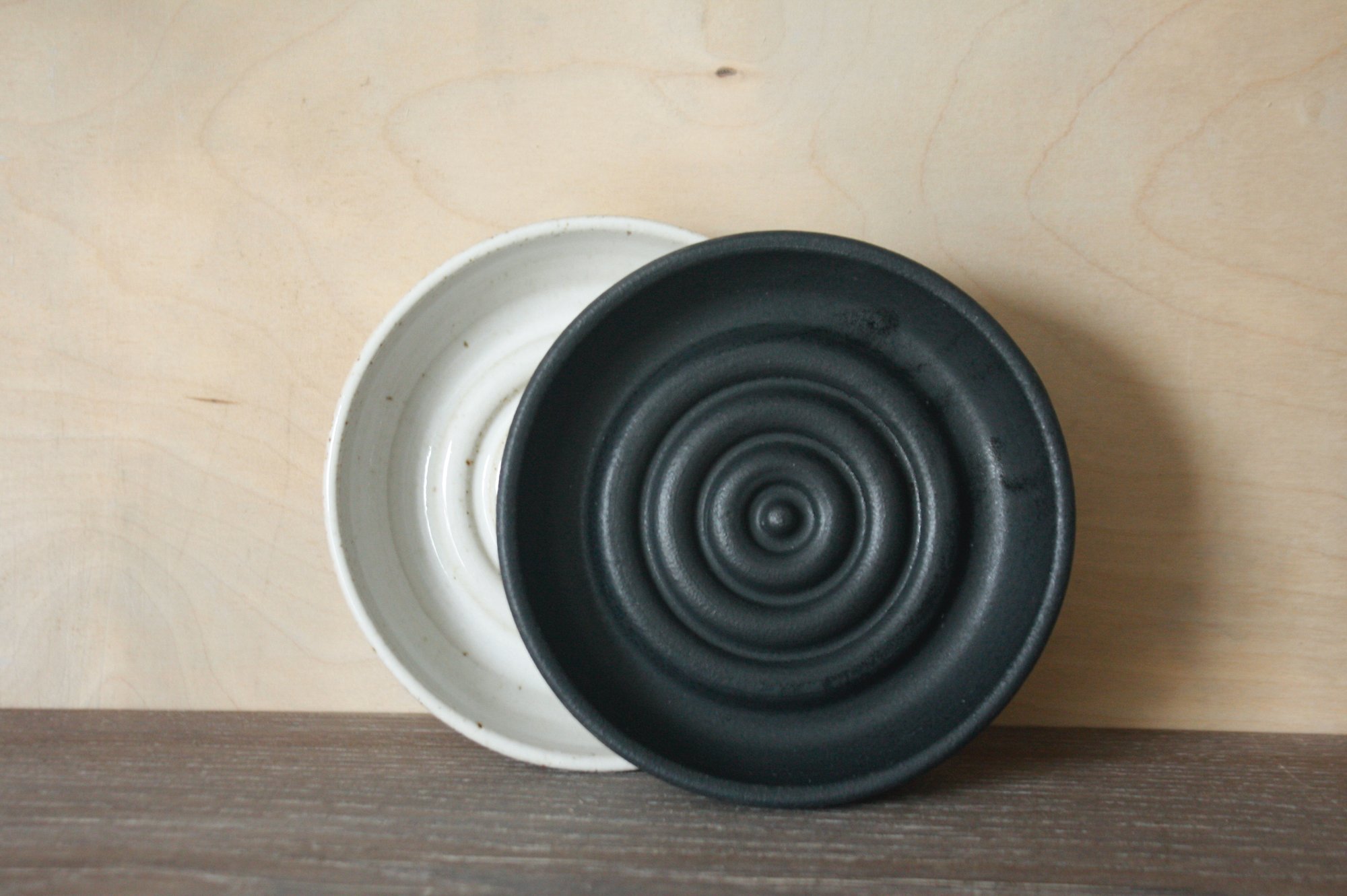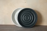 Wheel-thrown stoneware soap dish, glazed in a smooth satin matt black glaze.